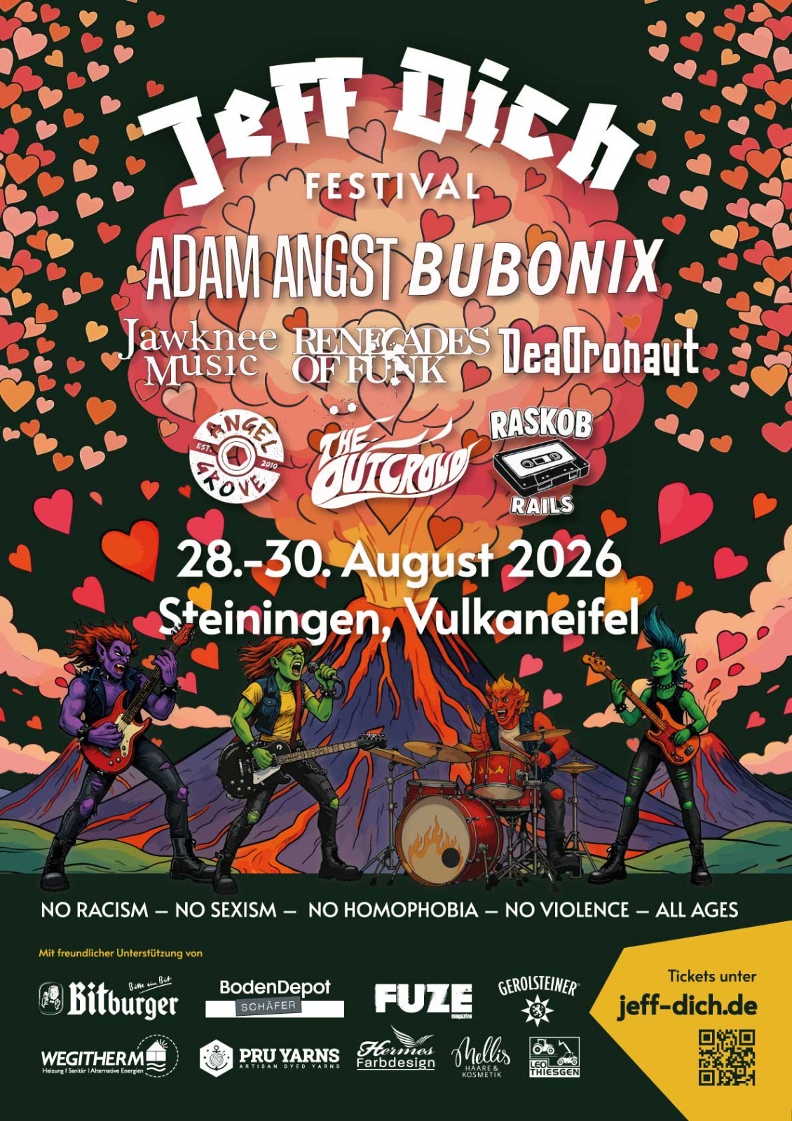 „Jeff Dich“ kommt aus dem Eifler Platt und bedeutet so viel wie  „Gib dich“ oder „Hör auf“. Der Verein dreht das um: Statt aufzugeben, wird die Ansage an alle gerichtet, die Hass schüren und Intoleranz verbreiten. Die Vulkaneifel ist eine Region mit Herz, mit Geschichte, mit Menschen, die anpacken. Jeff Dich verbindet bewusst lokale Identität mit klarer politischer Haltung – und zeigt, dass beides zusammengehört.